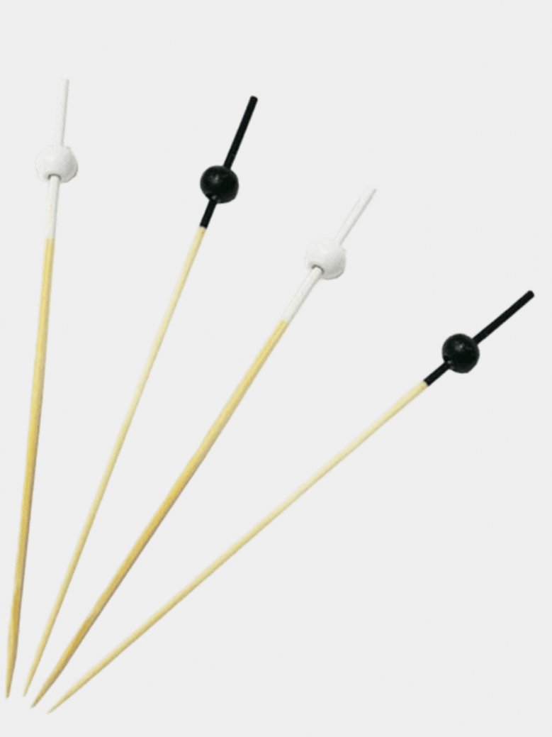 Пика д/канапе ЧЕРНАЯ БЕЛАЯ ЖЕМЧУЖИНА дерев 10см (100шт)