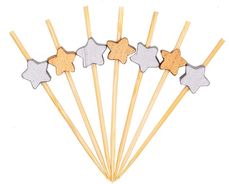 Пика д/канапе ЗВЕЗДА бамбук серебро/золото 7,5см (100шт)