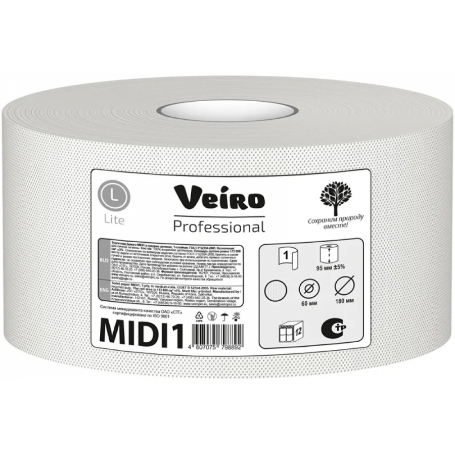 Туалетная бумага ВЕЙРО ПРОФ МИДИ 1 200 метров 1...