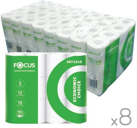 Туалетная бумага ФОКУС ЭКОНОМ 2 сл белая (12шт)