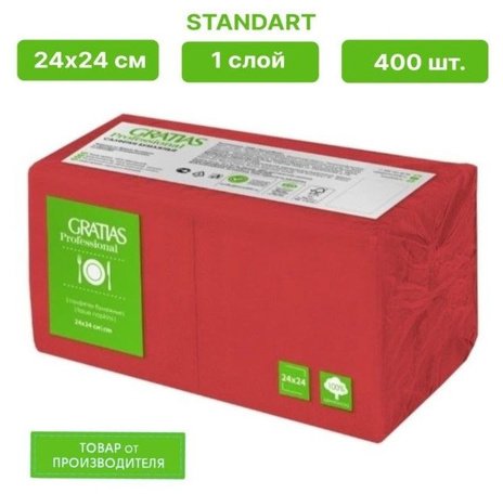 Салфетка 24*24 1 слойная Красная GRATIAS PROFESSIONAL 400шт
